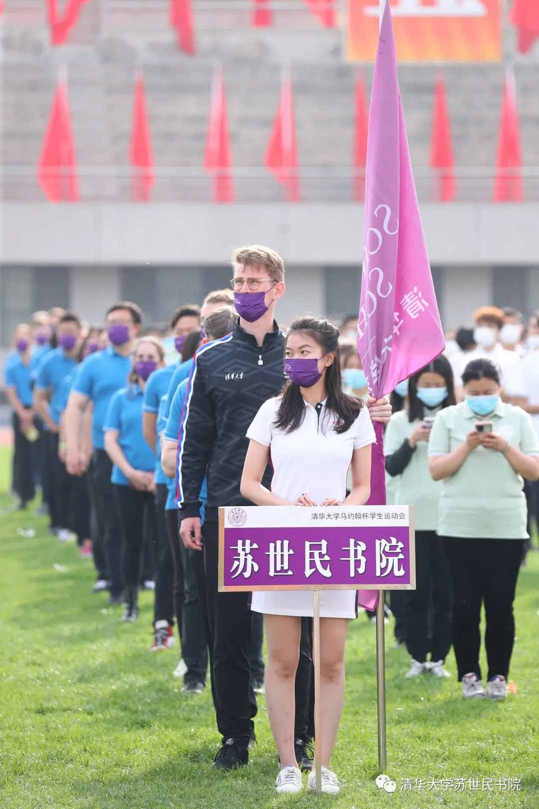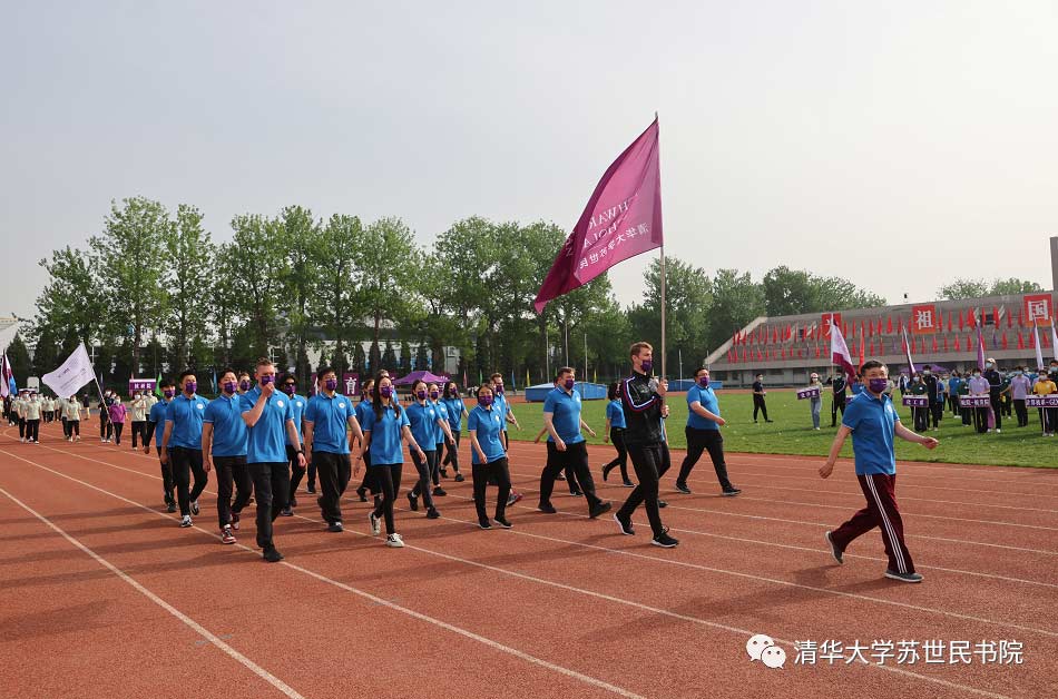 师生高喊“立足中国,面向世界,精进学业,为世为民”的口号走进会场。整齐的步伐、统一的着装、响亮的口号,书院师生在引导员、旗手和领队的带领下,步入赛场,走过看台,展现出清华人积极向上、拼搏奋进的风采和精神。