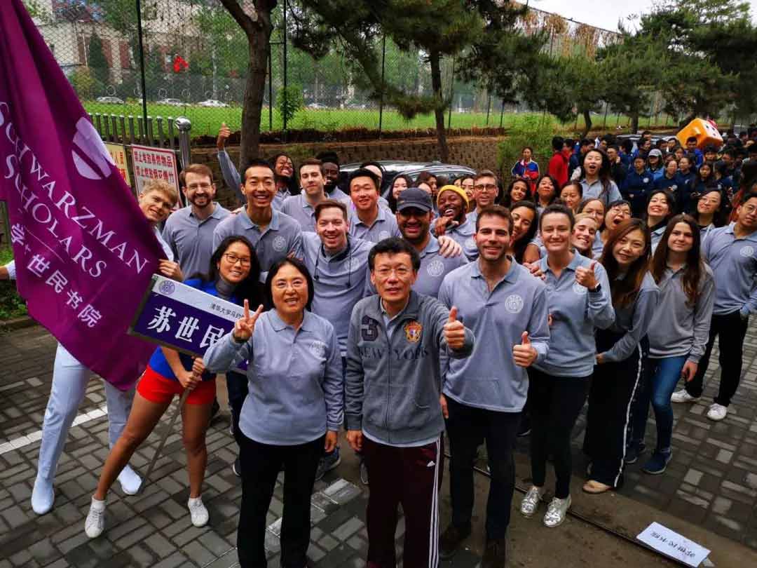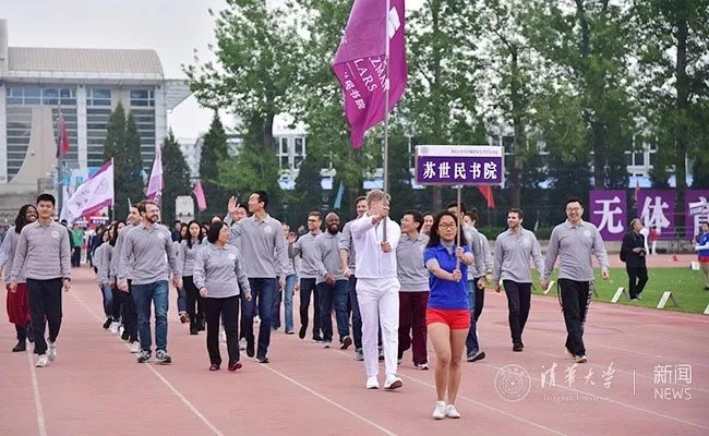 师生高喊“走进中国、面向世界,精进学业、为世为民”的口号走进会场。整齐的步伐、统一的着装、响亮的口号,书院师生在引导员、旗手和领队的带领下,步入赛场,走过看台,展现出清华人积极向上、拼搏奋进的风采和精神。