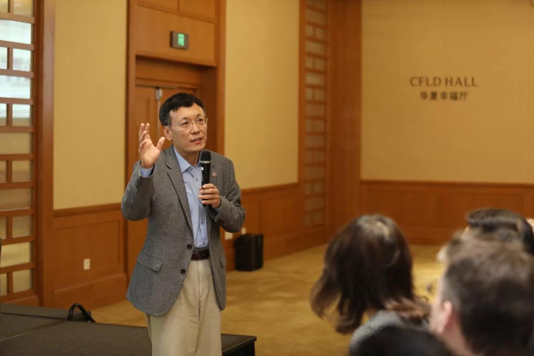 常务副院长潘庆中主持讲座,并介绍了嘉宾的背景以及与书院的故事。