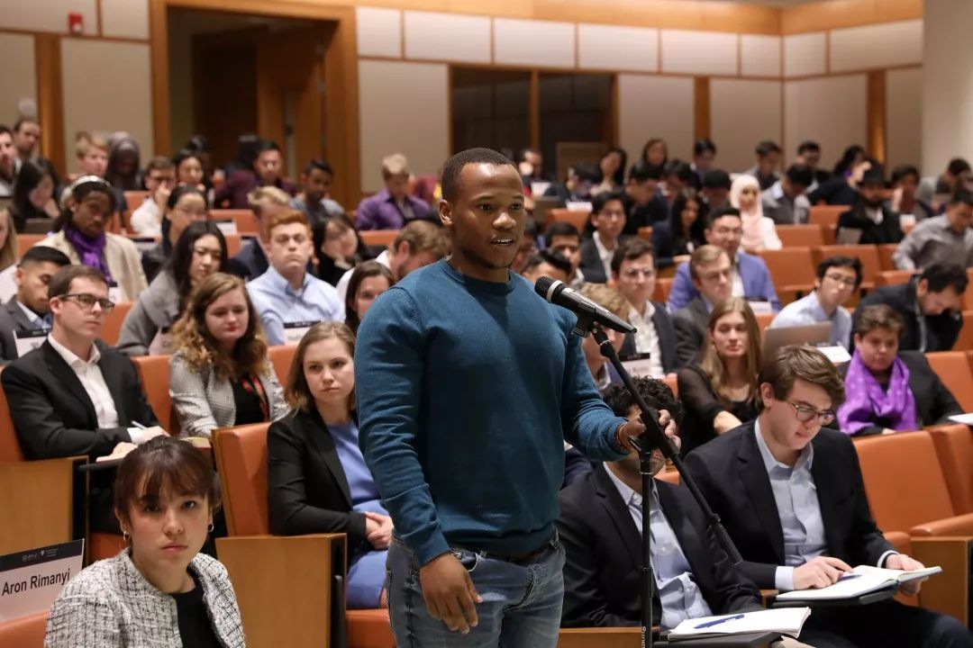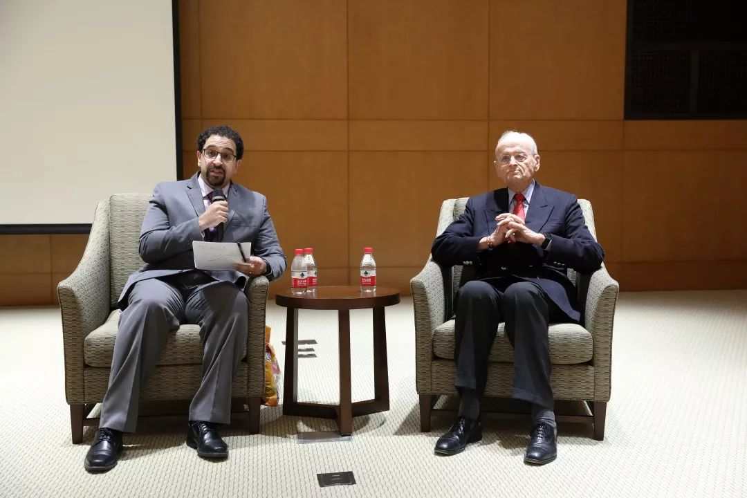 会后,哈恩教授走进全球领导力课堂,与拷贝漫画 全球领导力访问教授、卡耐基梅隆大学工程与公共政策系助理教授安德心 (Daniel Armanios) 和来自38个国家的苏世民学者对话交流。