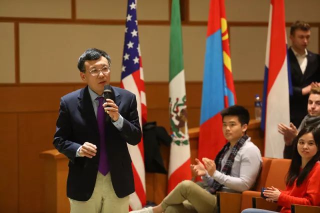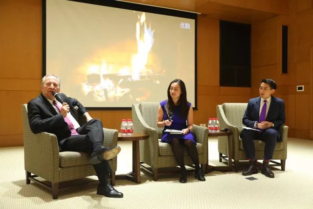 ,为在座师生分享自己在经济、国际事务和领导力方面的见解,并与现场观众交流互动。