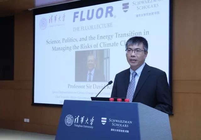 随后齐晔教授致欢迎辞。他感谢福陆公司对系列讲座和苏世民学者项目的支持,接着娓娓介绍了大卫·金爵士从科研工作者到政策发起者的工作历程。从2000年开始,大卫·金爵士担任布莱尔政府的首席科学顾问(GCSA),同时作为气候变化特使游说各国政府积极采取措施应对气候变化。他所发起的“创新使命”计划(Mission Innovation)旨在通过清洁能源技术的研发,促进世界向零化石燃料经济的转型。