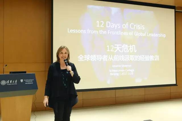 美国办公室执行主任、华威大学原校长薛伟德(Nigel Thrift)主持。他向同学们介绍了希兰女士的优秀经历。希兰女士是美国亚洲协会第七任会长兼执行总裁,自2013年6月在任期间,她负责领导和增进该组织在美国和亚洲横跨艺术与文化、政策和商业、以及教育相关的各项工作。希兰女士曾经担任过世界经济论坛的副主席和联合国粮食计划署执行干事,并曾担任过美国政府部门的高级官员,与几乎每一个亚洲国家开展高级别的外交活动。2011年,她被福布斯提名为世界上最有影响力的30名女性。