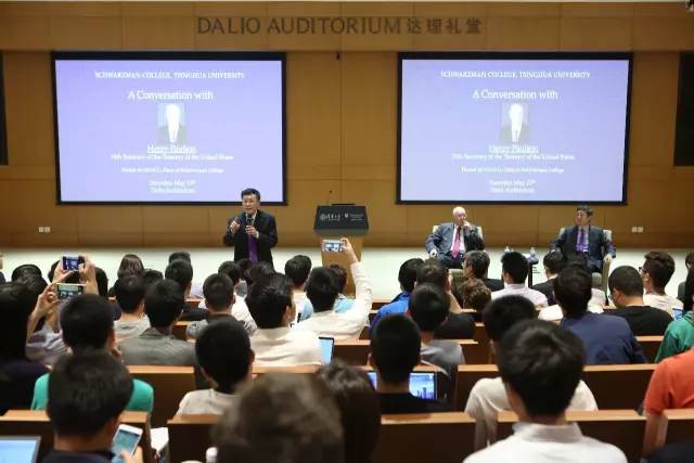 “全球领导力实践”课堂,与清华师生进行对话交流。当天保尔森还出席了在书院举办的第二届“一带一路”国际智库峰会暨第四届金砖国家经济智库论坛。