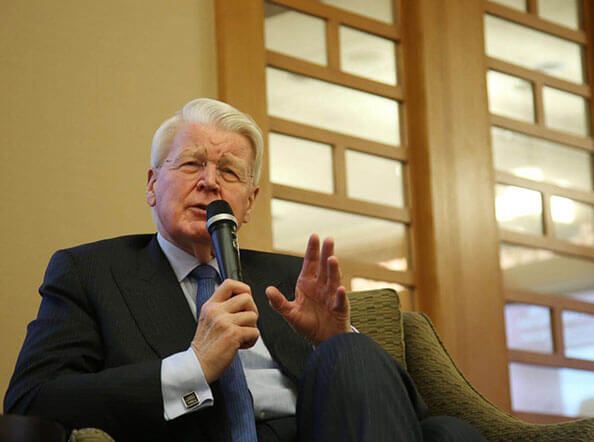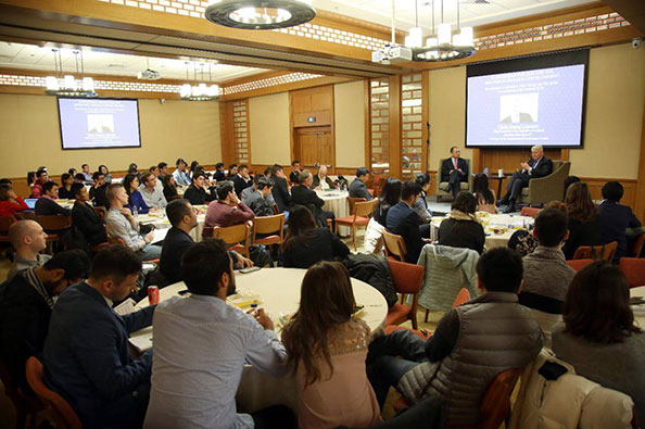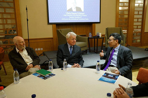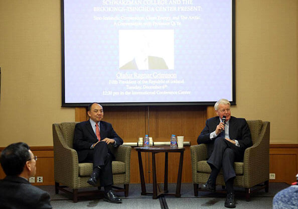 在“环境、气候与治理”课堂上,格里姆松结合担任冰岛总统的二十余年经历,为学生们生动地分析了近年来全球政治格局的变化,并帮助学生们理解了政府治理所应发挥的作用。格里姆松在课堂上还为学生分享了自己担任20多年总统的经历体会,他表示,做总统最大的挑战就是如何在迅速变化的世界中发挥应有的作用。