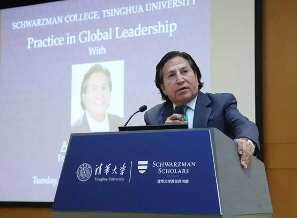 讲座吸引了来自清华各院系师生参加。潘庆中首先就政治生涯、学术生涯和经济领域三方面介绍了托莱多。托莱多于2001年成为秘鲁总统,是五百年内第一位通过民主选举、有着南美洲土著血统的总统。他出生于海拔2700多米的小山村里,家里共有兄弟姐妹15人,其中7人因饥饿而夭折。父母原以务农为生,经过个人的不懈努力,托莱多成为家中第一个进入高中学习的孩子,随后又获得了加州旧金山大学经济学和工商管理学士学位、斯坦福大学经济学硕士学位和人力资源经济学硕士和博士学位。在成为总统前,托莱多曾在世界银行、美洲开发银行工作,也在联合国工作过。