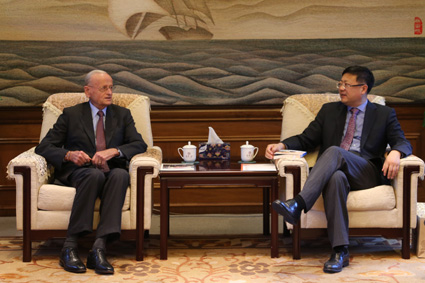 校长陈吉宁在工字厅会见了哈恩先生一行。