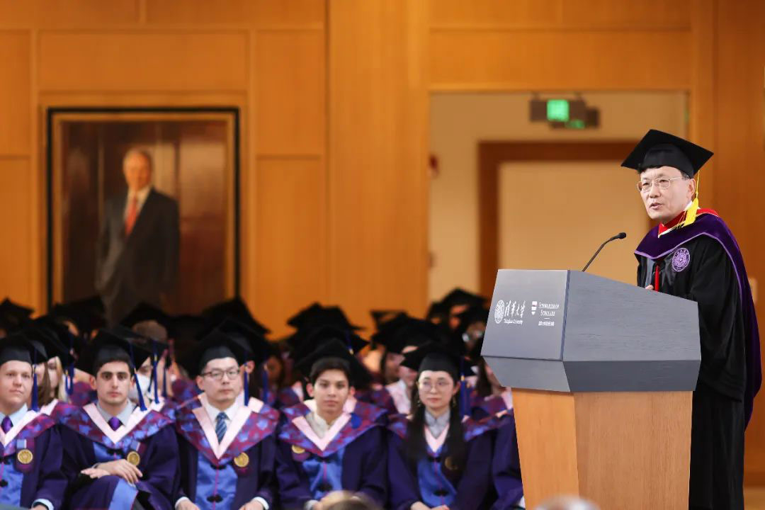 最后,潘庆中献上结束语。他表示,从学者到校友,这是第七届书院毕业生的身份转变。无论何时何地,都希望同学们身心健康,以苏世民学者的方式去思考问题。最后,他感谢所有家长、老师和教职工的辛勤付出,祝福所有学者毕业快乐。潘庆中风趣幽默的话语,让整个典礼洋溢着欢快的氛围。