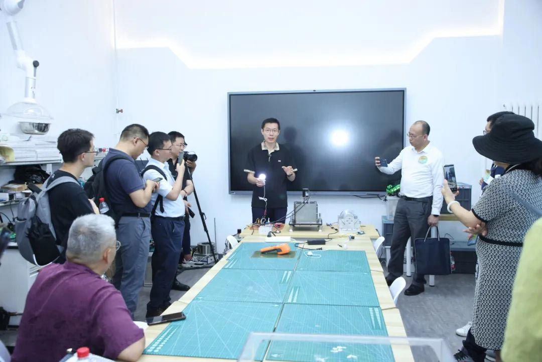 基础工业训练中心iCenter教研室副主任杜平介绍,中心不仅是校内主要的工程实践训练基地,而且是学生课外创新创业活动的支撑平台。杜平现场演示了“飞轮储能”项目,该项目是为未央书院电机专业“金工实习”课程定制化开发,也是中心设计课程的核心理念,即:选择与专业紧密相关的实践项目来设计课程内容,带领学生体验从设计到工业制造的全过程。嘉宾们还参观了3D打印实验室,触摸和感受学生们利用不同材质的特性通过3D打印机打印出来的作品。
