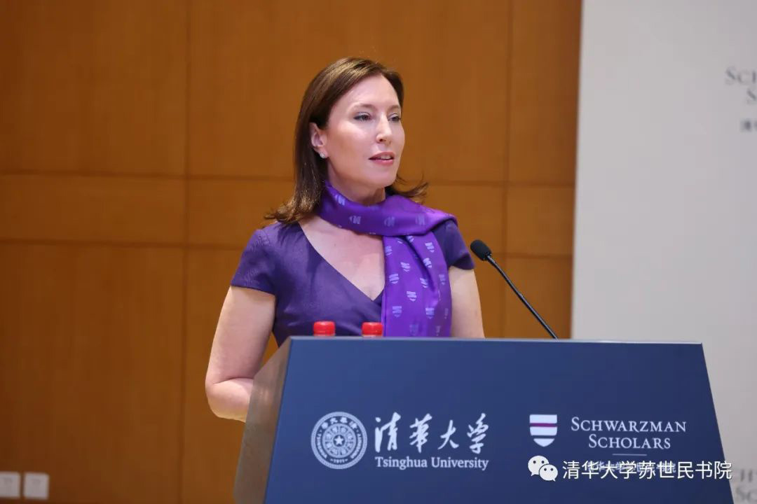 拉拉· 蒂恩斯(Lara Tiedens)对第八届苏世民学者们表示热烈的欢迎,并强调新学年会充满各种期待和未知,这与学者们敏锐的好奇心和勇往直前的精神相互契合。她指出,接下来学者们将通过各种方式学习和获得知识,包括课堂讲座、与他人的对话和生活中的各种经验,在这个过程中,大家将受益匪浅。她鼓励学者们在这里保持开放的心态,勇于尝试新事物,积极参与各种经验,以充分利用在书院的宝贵时光。