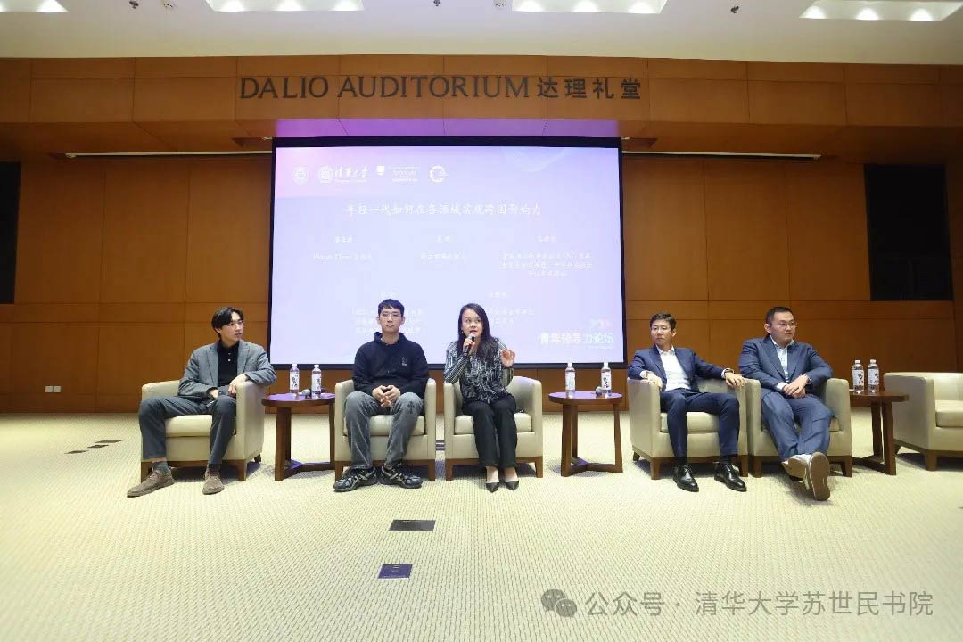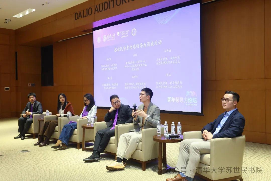 在讨论苏世民学者全球领导力时,世界经济论坛杰出青年北京社区下一届执委戴正主持会议。五位苏世民学者发表了精彩分享。第四届苏世民学者黄澈分享了她从纽约大学毕业后加入书院的经历以及目前从事的工作。目前,她专注于中国电商出海业务,以直播电商和短视频为例,强调了语言和讲述能力的重要性,并希望用更生动的方式传达中国故事。第三届苏世民学者潘芳迪讲述了自己的职业经历,更专注于帮助中国公司拓展海外市场。她认为中国的品牌在海外知名度不够的原因,是“人”的问题。她鼓励广大青年要有力量打破次元壁,走出舒适区。第三届苏世民学者苏靖轩分享了他在拷贝漫画