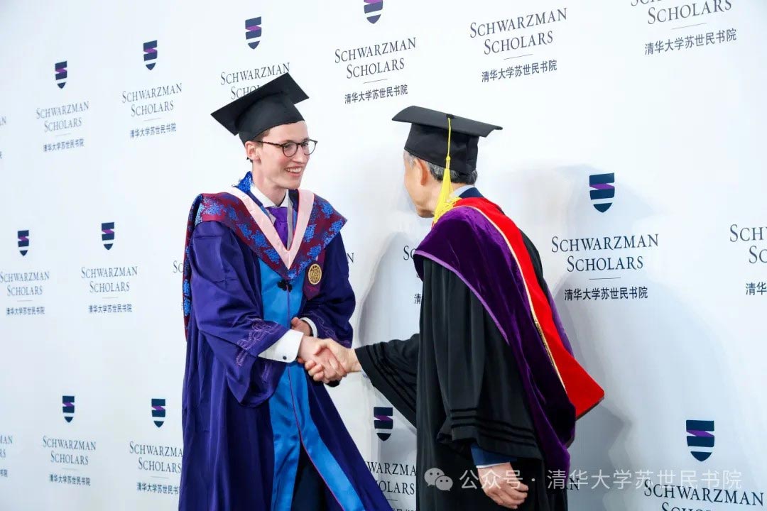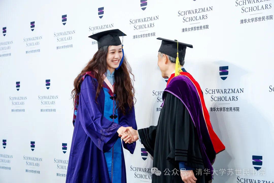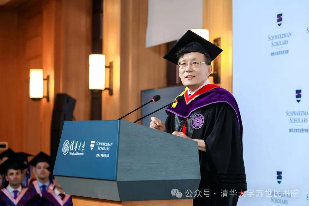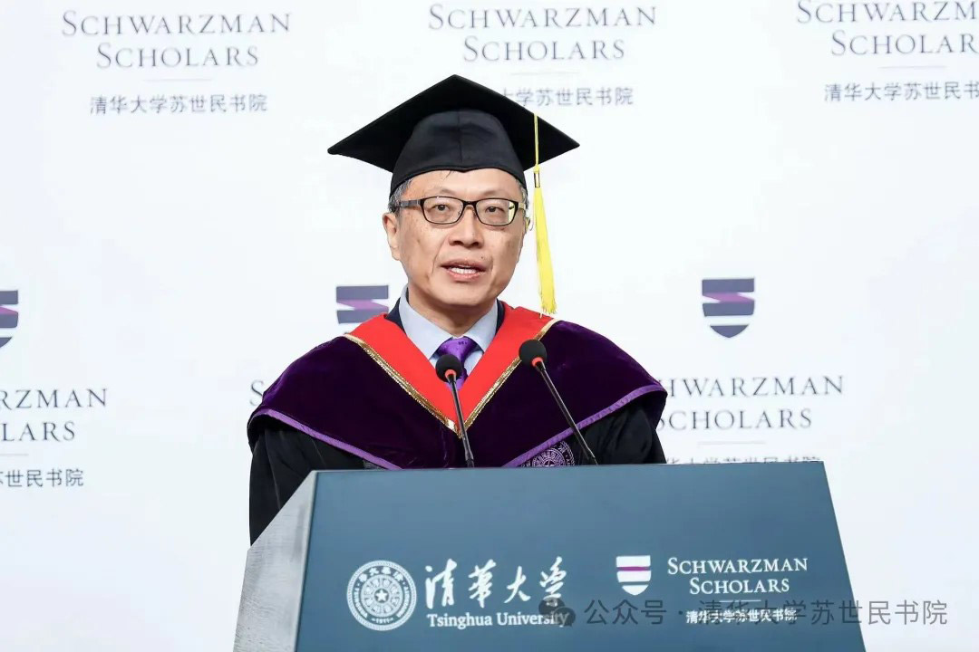 2024届的毕业生们表示诚挚的祝贺。第8届苏世民学者在入学时被赋予了“无限的可能∞”,对探索未知事物的好奇使他们成为“好奇心一代”。在文化交流中他们展现出了爱心的力量,成为了“同情心一代”。学者们在校园体育比赛中展现出的体育精神和取得的优异成绩,则使他们成为“冠军一代”。最后,潘庆中感谢所有家长、老师、教职工和后勤人员的辛勤付出,并再次祝福所有学者毕业快乐。