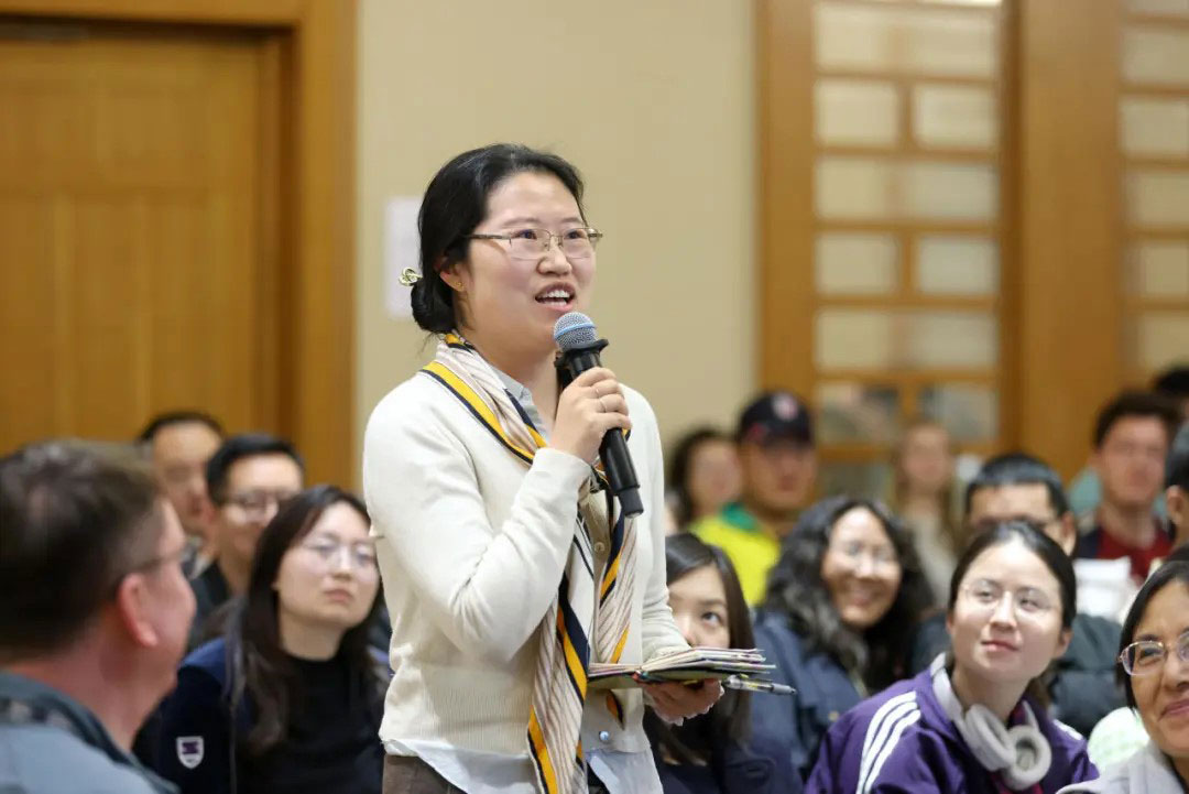在交流环节,师生围绕新媒体在中美交流中的作用等热点议题提问,柯伟林教授耐心解答,鼓励青年积极推动双方交流,贡献双边关系改善力量,寄语青年学生以开放多元心态看待中美关系,强调中美关系改善主要依靠青年群体发挥积极作用。