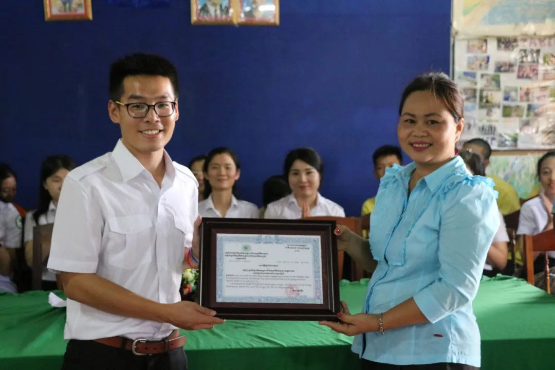 对余洲而言,“传播”远不止是信息的传递,它更关乎人与人之间、文化与文化之间,如何真正理解彼此。从财务管理专业毕业后,他的兴趣并未止步于数字和市场,凭借本科在校几年间支持国际交流工作的经验,成功跨专业得以前往柬埔寨孔子学院担任下设语言与文化中心负责人。在高棉文明的发源地茶胶省,他与当地的非营利组织和学校通力协作,从零到一搭建了这里的孔子课堂,筹建了中文图书馆,并主持多项中柬文化交流项目,获当地政府与机构嘉奖。