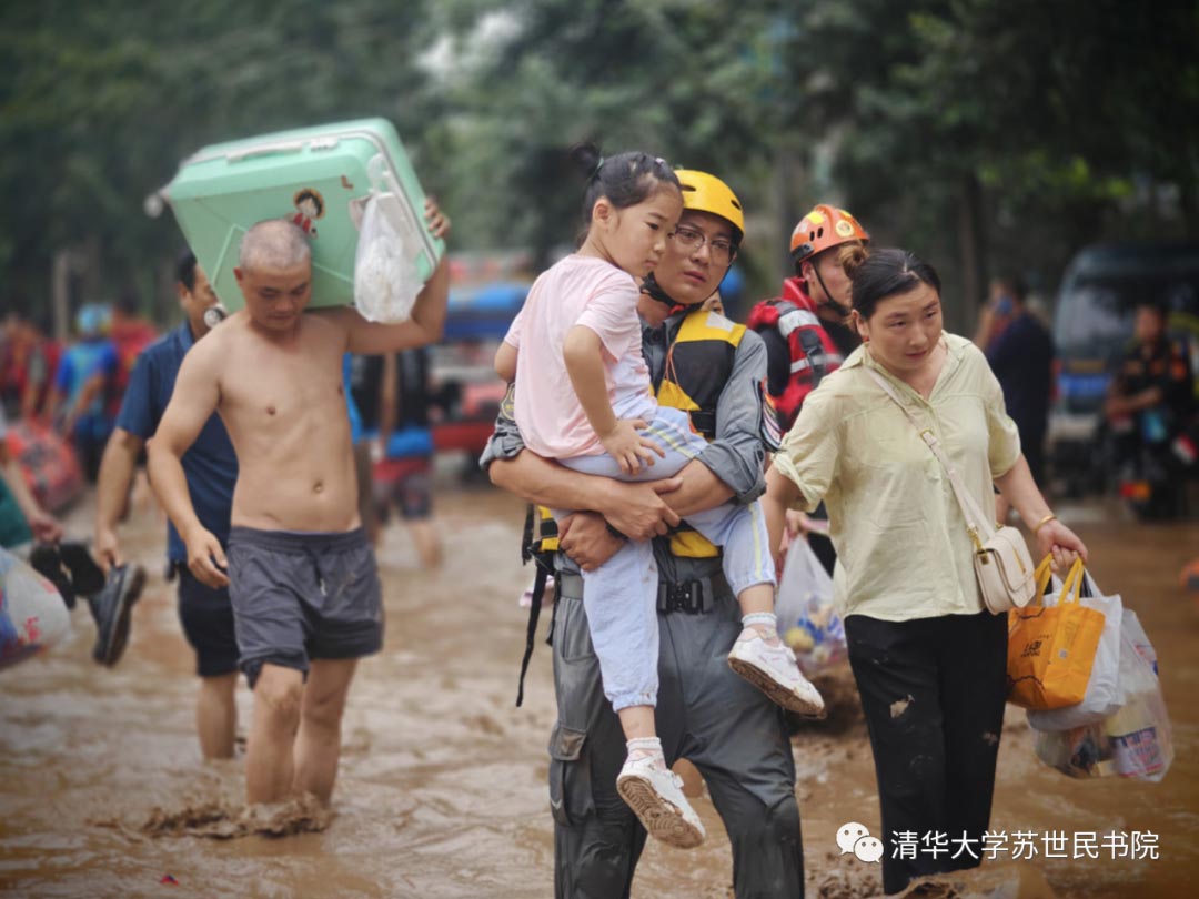 中国民间救援队在河北涿州转移被洪水围困的市民。
