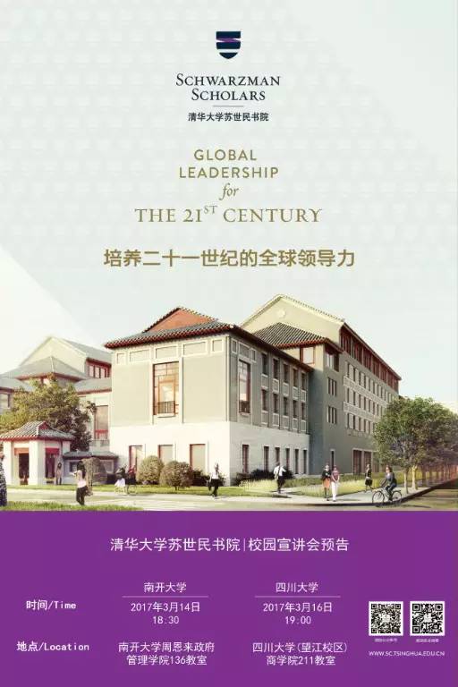 首批苏世民学者已于2016 年8 月正式入学,共有来自全球30个国家的110位杰出青年。第二届招生录取工作已经基本结束,第三届苏世民学者招募(2018年8月入学)将于明年2月正式启动。欢迎各位有兴趣的同学报名参加招生宣讲会。