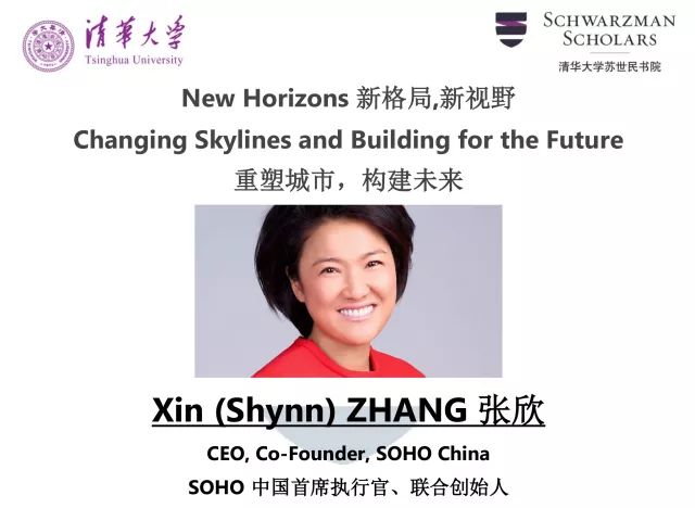 张欣女士与丈夫潘石屹于1995年共同创建了SOHO中国有限公司。作为首席执行官,她带领公司成为中国最大的甲级写字楼开发商。 SOHO中国在北京和上海开发的总面积已超过550万平方米。她与世界顶级建筑师合作打造地标性建筑,为中国城市的天际线增添了不少亮点。2014年SOHO中国推出SOHO 3Q,引领共享办公潮流。SOHO 3Q迅速成长为中国最大的共享办公空间。