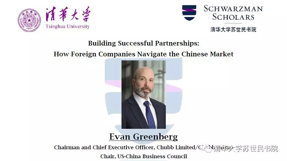 In this conversation, Evan Greenberg will share insights on how foreign businesses advocate for their interests in the Chinese market, Chubb’s experience forming the first Sino-foreign equity joint venture with Huatai Insurance Group, and his perspective on the opportunities and risks currently at play in the economic relationship between China and the US. This fireside chat will be hosted by Ankita Satpathy and Kiran Sridhar, Schwarzman Scholars from the Class of 2019-20.